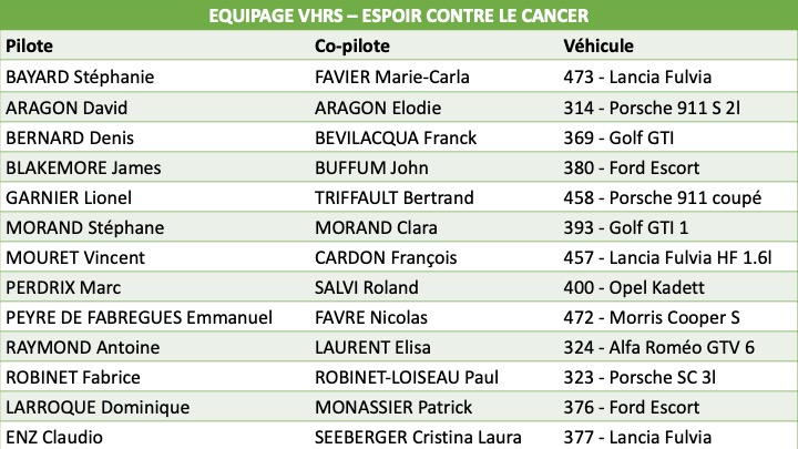 3 teams en VHRS aux couleurs d’Espoir contre le cancer